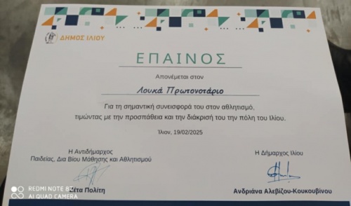 Στον Δήμο Ιλίου παρευρέθηκε ο συντοπίτης μας πρωταθλητής στίβου ΑμεΑ, Λουκάς Πρωτονοτάριος, όπου έλαβε τιμητική διάκριση για τη σημαντική συνεισφορά του στον αθλητισμό και τις αθλητικές επιτυχίες του το 2024: