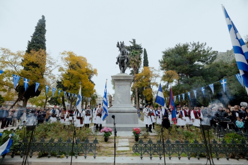 Με τιμή και συγκίνηση πραγματοποιήθηκε στο Ναύπλιο η μαθητική παρέλαση για την εθνική μας επέτειο, παρουσία του Σεβασμιώτατου Μητροπολίτη Αργολίδας κ. Νεκταρίου, της εκπροσώπου της κυβέρνησης, Γ.Γ. Σύγχρονου Πολιτισμού, Ελένης Δουνδουλάκη, των Βουλευτών του νομού, του Αντιπεριφερειάρχη Αργολίδας, Βασίλη Σιδέρη, του Δημάρχου Ναυπλιέων, Δημητρίου Ορφανού, καθώς και εκπροσώπων των πολιτικών και στρατιωτικών αρχών, φορέων και συλλόγων της περιοχής. Την παρέλαση άνοιξε, όπως κάθε χρόνο, η Φιλαρμονική του Δήμου Ναυπλιέων υπό τη διεύθυνση του αρχιμουσικού Θεοδόση Αντωνιάδη, δίνοντας τον ρυθμό σε μια λαμπρή τελετή. Ο Δήμαρχος Ναυπλιέων, Δημήτριος Ορφανός, δήλωσε μετά το πέρας της παρέλασης: «Σήμερα τα παιδιά μας γέμισαν τις καρδιές μας με υπερηφάνεια και ελπίδα. Τους αξίζουν συγχαρητήρια για την παρουσία τους, που μας υπενθυμίζει τη σημασία της ιστορικής μας μνήμης. Ως Δήμος, θα συνεχίσουμε να στεκόμαστε δίπλα τους και να τους προσφέρουμε ό,τι καλύτερο για το μέλλον τους». Προηγήθηκε επιμνημόσυνη δέηση και κατάθεση στεφάνων στο άγαλμα του Θεόδωρου Κολοκοτρώνη, από τις αρχές και τους φορείς του τόπου, ενώ η τελετή κορυφώθηκε με την ανάκρουση του Εθνικού Ύμνου, σκορπίζοντας συγκίνηση σε όλους τους παρευρισκόμενους.