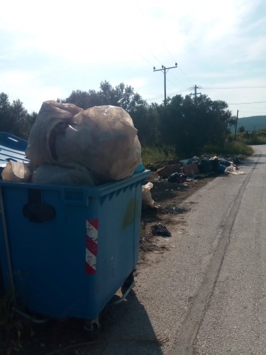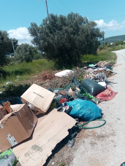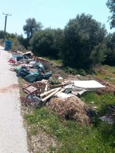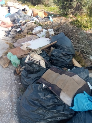 «Χωματερή Αγίας Μαρίνας και Άρχια, Τύμβος. Χωρίς φως χωρίς μια Ταμπέλα, νύχτα πετούν ότι φανταστεί κανείς μέχρι που κλείνει ο δρόμος. Οι επιτήδειοι έχουν ρίξει το συρματόπλεγμα του οικοπέδου δύο φορές...!!! Τι κ αν έβαλα κορδέλες ταμπέλες ...μάταια...!! Ο Δήμος κατάντια... Αισχος...».