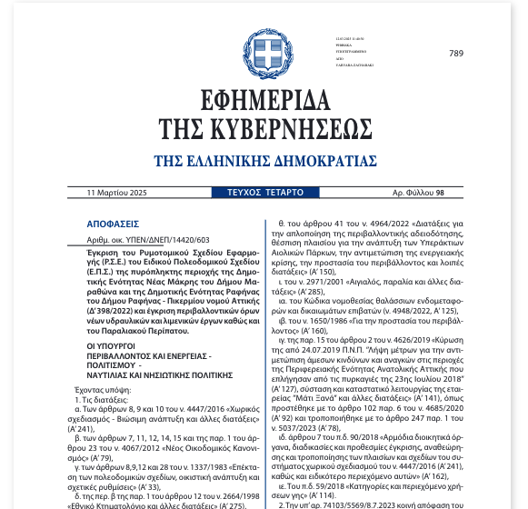 Τον Μάρτιο του 2025 η ένταξη στο σχέδιο πόλης της περιοχής Μάτι του δήμου Μαραθώνα παρουσιάστηκε ως μια ιστορική εξέλιξη.