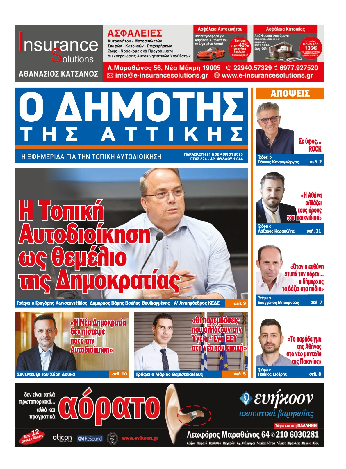 Την Πέμπτη 20 Νοεμβρίου 2025 κυκλοφορεί ο νέος ΔΗΜΟΤΗΣ ΤΗΣ ΑΤΤΙΚΗΣ
