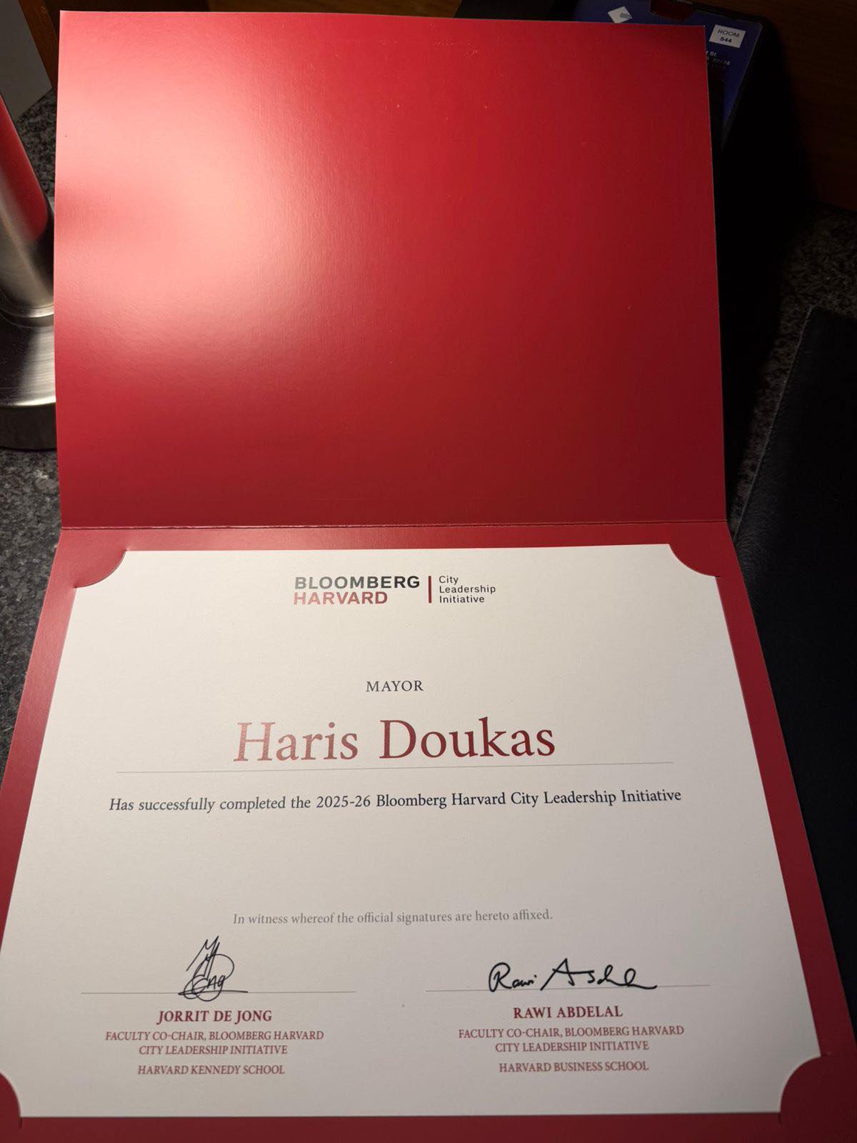 Με μια «βαλίτσα» γεμάτη τεχνογνωσία, διεθνείς επαφές και κυρίως συγκεκριμένα εργαλεία για τη διοίκηση της πόλης, επιστρέφει από τη Βοστώνη ο Δήμαρχος Αθηναίων, Χάρης Δούκας, ολοκληρώνοντας έναν απαιτητικό κύκλο εκπαίδευσης στο Harvard University, μαζί με δεκάδες άλλους δημάρχους από ολόκληρο τον κόσμο. Με την εκπαίδευση αυτή ο δήμαρχος Αθηναίων φιλοδοξεί να αφήσει ένα ξεχωριστό αποτύπωμα στη λειτουργία του Δήμου.