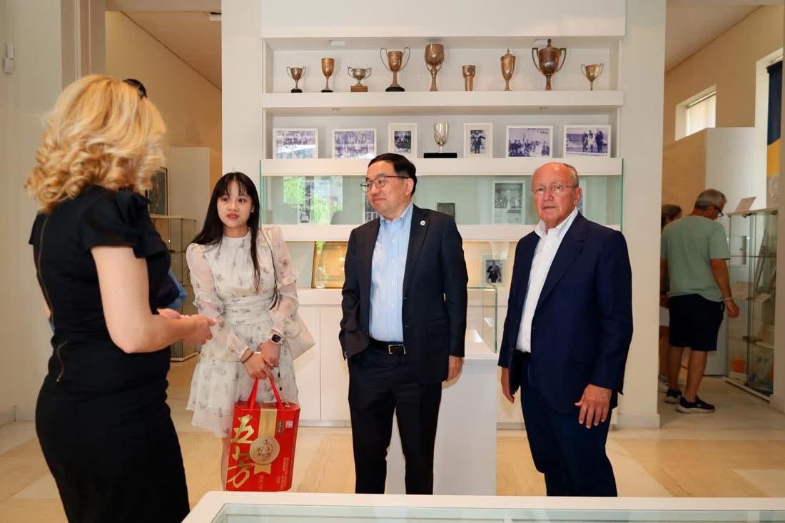 Ο πρέσβης της Κίνας ξεναγήθηκε στο Μουσείο και δήλωσε εντυπωσιασμένος από τα εκθέματα. Στη συνέχεια συζήτησε για αρκετή ώρα με τον Δήμαρχο για θέματα συνεργασίας της Κίνας με τον Δήμο Μαραθώνα στους τομείς της εκπαίδευσης, του τουρισμού, του πολιτισμού και, βέβαια, του αθλητισμού, με τον Αυθεντικό Μαραθώνιο να βρίσκεται στο επίκεντρο. Στην Κίνα διεξάγονται κάθε χρόνο περίπου 2.000 Μαραθώνιοι και το όνομα του τόπου μας είναι γνωστό και πολύ σεβαστό στη χώρα.