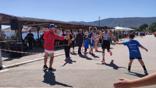 Αμέσως μετά τις απονομές προσφέρθηκε κέρασμα…αποκατάστασης, δλδ χορταστικές αλμυρές πίτες συνοδευόμενες από αναψυκτικά και μπύρες. Ολοι δρομείς παρέλαβαν καλαίσθητο t-shirt. Παραβρέθηκε ο Νίκος Σταυρέλης, ο Δήμαρχος Κορινθίων. Υποσχέθηκε, κατά το σύντομο χαιρετισμό του, διεύρυνση της αρωγής του δήμου στα δρομικά γεγονότα… Συνοδευόταν από τον Γιάννη Καρασάβα και τον Κώστα Δημάκο, τους αντιδημάρχους. Παρούσα η Ματίνα Πάξου, η πρόεδρος της Δ.Κ.